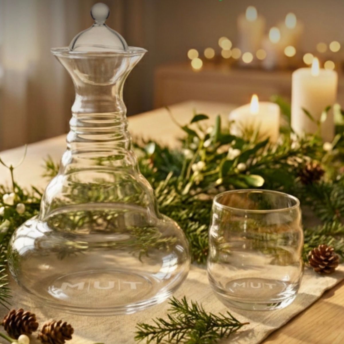 Die M | U | T Karaffe & auch das M | U | T Glas stehen für Mut, Zuversicht & Gemeinschaft.